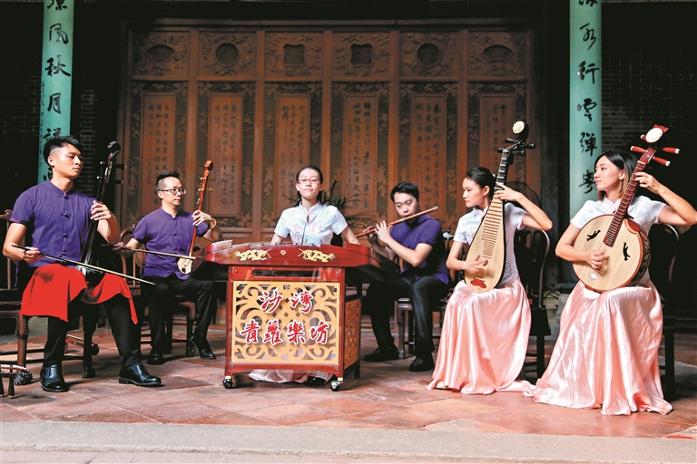 走在广州番禺沙湾古镇蜿蜒曲折的麻石路上,周围传来阵阵悠扬的广东音乐,曲调优雅、沁人心脾。番禺沙湾是广东音乐的摇篮,在这片岭南古建筑群中,空气里仿佛都弥漫着广东音乐的因子。