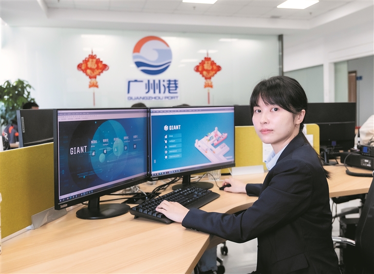 南沙港四期全自动化码头是全球首个应用北斗导航系统和5G通信的自动化码头。有条不紊的景象背后,离不开码头的“调度大脑”——堆场计划。杨培薇,就是这个关键岗位的一员。她所从事的工作,相当于在码头流转过程中为集装箱作业打造了一个“智慧中枢”,需要精心做好集装箱卸船过程中的各项计划。