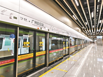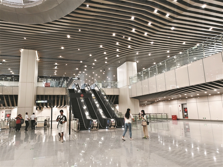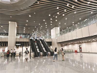 记者来到地铁广州白云站,映入眼帘的是中央圆弧造型“天窗”,模拟自然阳光透过白云山云雾,斑驳地洒在周边吊顶犹如蜿蜒起伏的山体,凸显出乘客流线中的重要节点。全站采用“光”元素导引客流,既有功能性又有装饰性,为空间提供柔和的自然光线,同时为乘客旅程中的关键节点增添了特色。