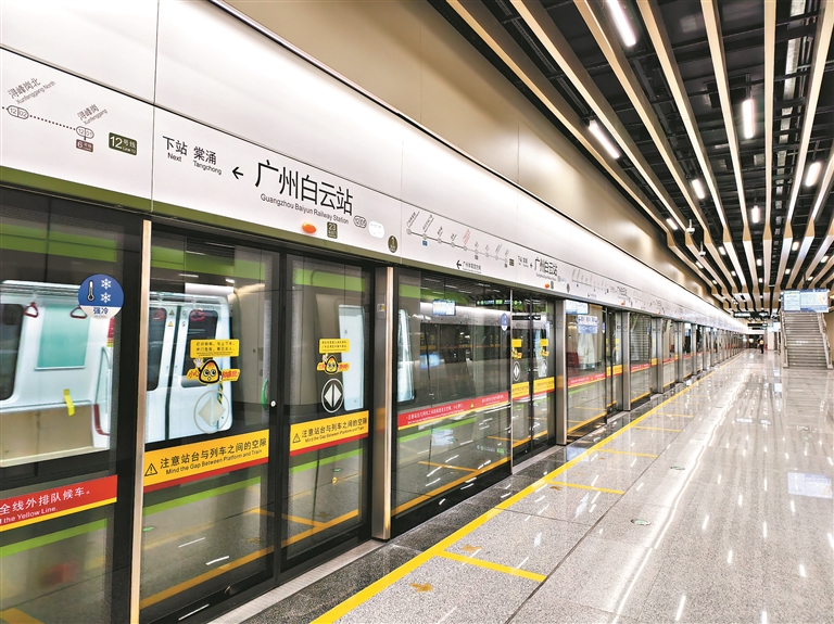 广州白云站是广州市首个按现代综合交通枢纽规划建设理念打造的特大型枢纽工程。地铁广州白云站是目前广州地铁最大跨度车站,柱跨24米,地下四层岛式结构,总建筑面积约18万平方米,其中本次开通约9万平方米——这是什么概念?工作人员巡站时,需要使用电瓶车。