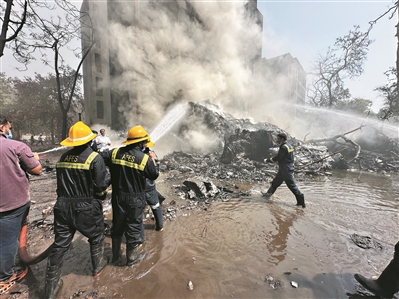 现场画面显示,客机起飞后不久迅速下降,撞上一栋建筑物后爆炸起火,飞机残骸四处散落。