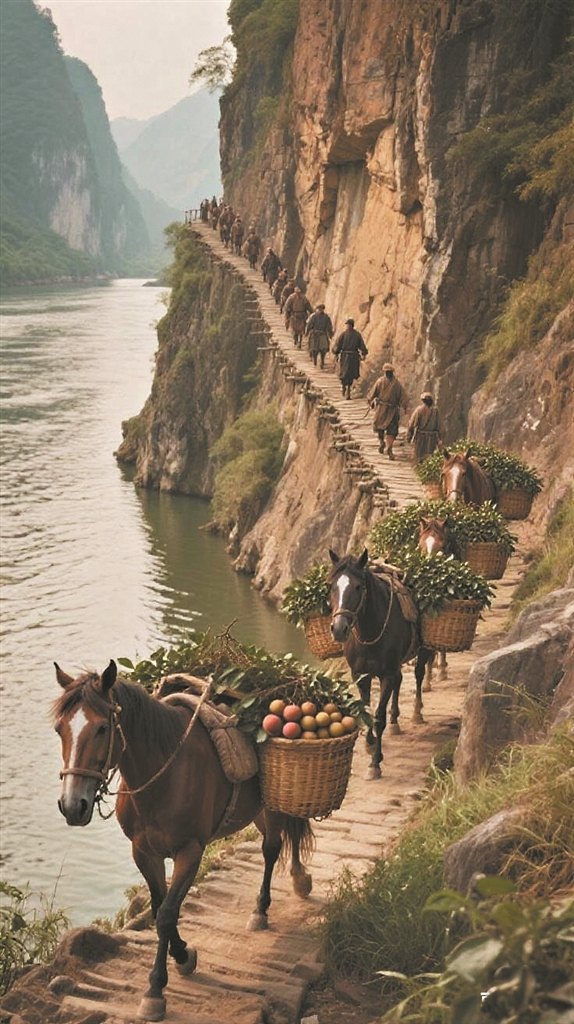 在英德北江的浈阳峡,崖壁上的石垒古道及古栈道的崖刻遗址历经千年风雨,依旧历历在目。每当夏日来临,蝉鸣聒噪,江面波光粼粼,恍惚间,仿佛能看见千年前那支运送荔枝的队伍,正沿着古驿道匆匆北上。
