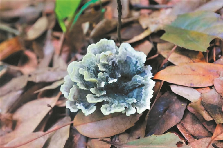 干巴菌是珍稀野生食用菌,学名为绣球菌,对生存环境要求高,它的生长则进一步表明该保护区森林生态系统稳定。
