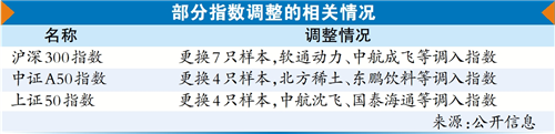 广州日报讯 (文/表 全媒体记者 王楚涵)A股多个指数将迎来成分股的重要调整。中证指数公司等发布的公告显示,将调整沪深300、中证A50、上证50等指数样本,本次调整为指数样本的定期例行调整,将于6月13日收市后正式生效。