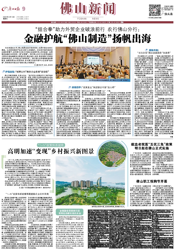 - 金融护航“佛山制造”扬帆出海 作为制造业大市,佛山既是改革开放的前沿,也是外贸企业的汇集地。从这里制造的产品走出国门,远销海外。在全球外贸风险波动加剧的背景下,如何更充分助力外贸企业拓展市场,应对挑战?这是摆在金融行业面前的一
