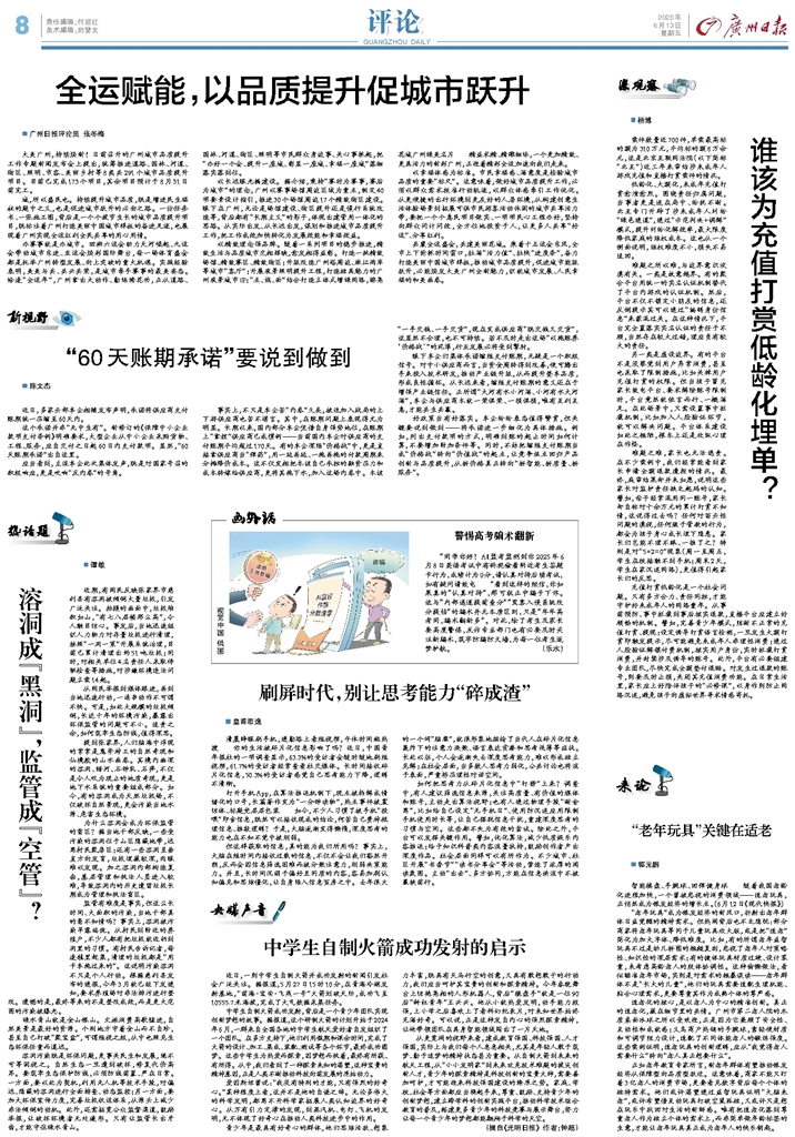 - 全运赋能,以品质提升促城市跃升 广州日报评论员 张冬梅 大美广州,持续焕新!日前召开的广州城市品质提升工作专题新闻发布会上提出,统筹推进道路、园林、河道、街区、照明、市容、美丽乡村等8类共291个城市品质提升项目。目前已完成
