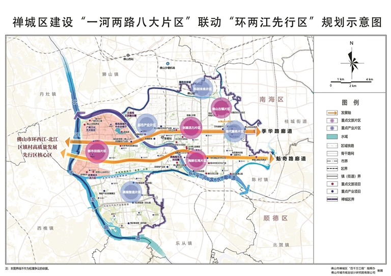 到2025年底,“一河两路八大片区”成为禅城区“百千万工程”三年初见成效的重要展示区。东平河打造为“水经济”展示轴,大力发展演艺经济、滨水经济、休闲经济,推进活力新港、澜石记忆、佛山左岸文化创意艺术走廊、MAX科技园等重点项目建设,营造水清河畅、岸绿花红的优质滨水景观。季华路打造为“总部+服务”展示轴,推进佛山中央法务区、佛山平安中心、简一集团总部等重点项目建设。魁奇路打造为“数字+文化”展示轴,推进黎冲状元文化广场、美陶湾CUS101、YEX佛山创意园、星光文化园、怡亚通创新中心等重点项目建设。季华路和魁奇路周边的绿化、美化、彩化水平进一步提升,打造为城市门面。高端智造片区、都市产业片区、现代服务片区、科创未来片区等4个产业片区推进一批重点产业项目建成投产,引进一批专业服务机构落户。4个文旅片区新增一批重点文旅项目。