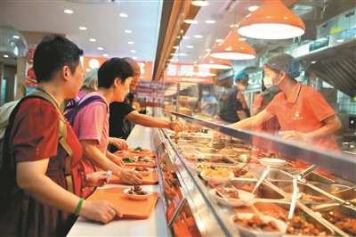 下午2点,快递小哥小黄兴冲冲走进社区饭堂,“还有热饭吃,我吃完饭就在这里歇歇脚,到5点再接单。”越秀社区饭堂服务的不只是长者,还有不同岗位的劳动者,更成为“暖新驿站”,增加便民服务设备配置,为新就业群体提供歇脚、应急救治、充电等服务。外卖、快递小哥等新就业群体和环卫工人等均可享受优惠价用餐。