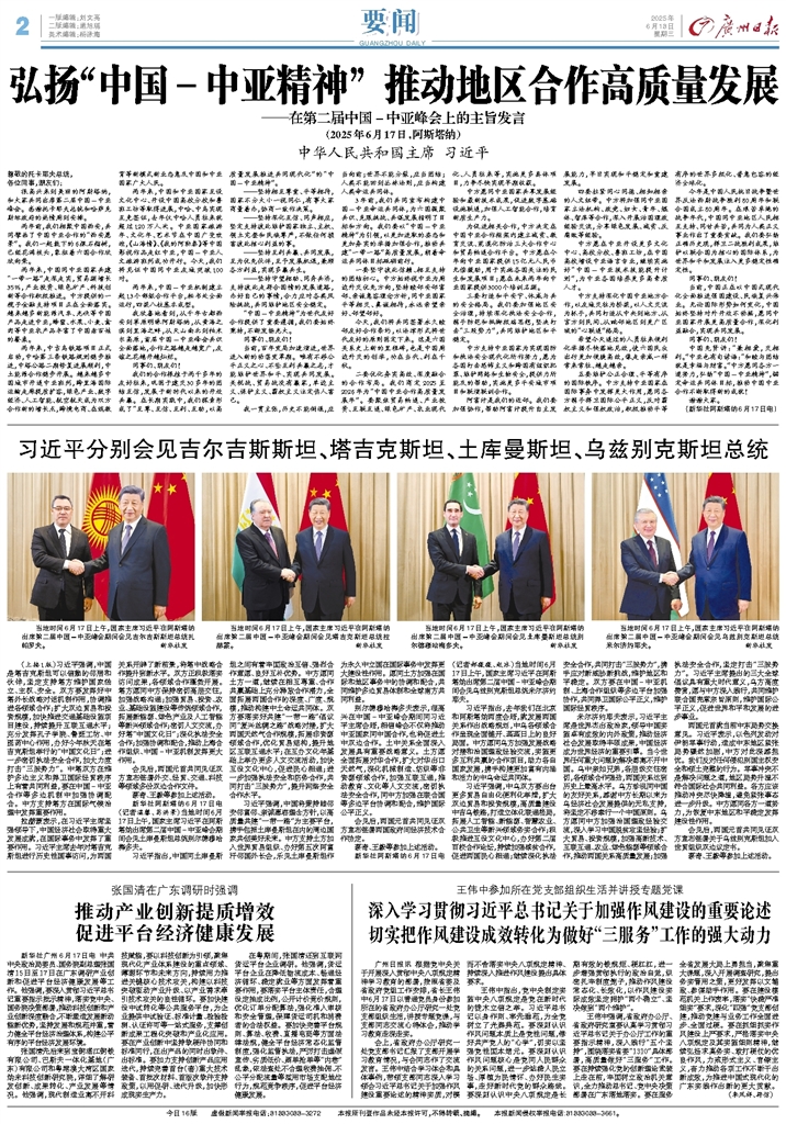 - 习近平分别会见吉尔吉斯斯坦、塔吉克斯坦、土库曼斯坦、乌兹别克斯坦总统 (上接1版)习近平强调,中国是塔吉克斯坦可以信赖的邻居和伙伴,坚定支持塔方维护国家独立、主权、安全。双方要发挥好中塔外长战略对话机制作用,协调推进各领域合作;扩大双边贸易和投资规模,加快推进交通
