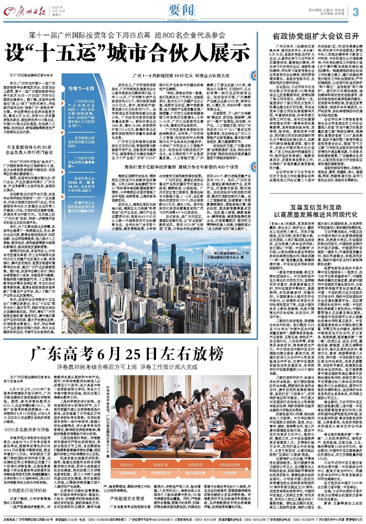 - 设“十五运”城市合伙人展示 文/广州日报全媒体记者许晓芳 昨日,广州市召开第十一届广州国际投资年会新闻发布会,记者在会上获悉,第十一届广州国际投资年会将于本月26日—27日在广州市白云国际会堂举办。据了解,本届年会将通过