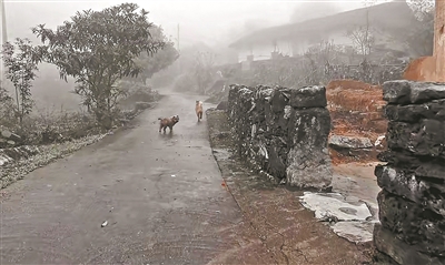 如今驾车可通过蜿蜒曲折的盘山公路抵达绝壁上的水吊村,在水泥路的尽头,水吊村的轮廓出现在眼前。站在村头,一侧是静谧的村庄,另一侧则是令人胆寒的绝壁深渊。村子里,大部分青壮年都已外出务工,除了风声和鸟鸣,显得十分安静,只有几位留守老人在地里劳作,饱经沧桑的泥砖屋错落有致地排列着,时光仿佛在此停留。