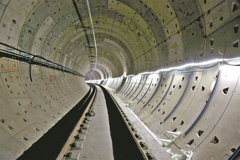 二十二号线后通段全长约12公里,设计时速160公里,共设4座车站。因施工用地等影响,原计划设置的两座机铺铺轨基地只能调整为散铺铺轨基地,可使用面积减少近一半。建设者们“见缝插针”式周密规划物资存储、材料供应和人员调配,采用“机械铺设”与“人工散铺”相结合的灵活工法,有效克服了空间限制。