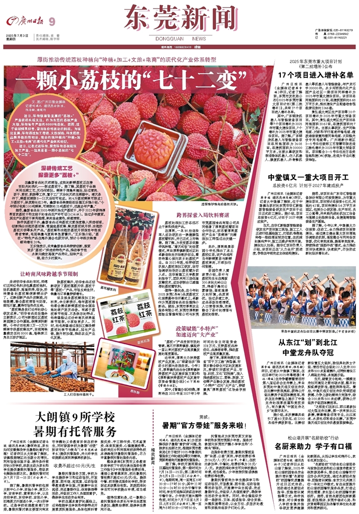- 一颗小荔枝的“七十二变” 文、图/广州日报全媒体记者刘满元 通讯员余凯琪、陈洁敏、谢超均 近日,厚街镇蓬勃发展的“荔枝+”产业获得央视关注。作为东莞的荔枝产业大镇,厚街每年产出约6000吨荔枝。然而,过于依赖鲜果销