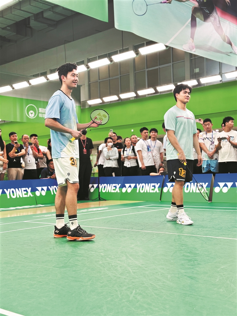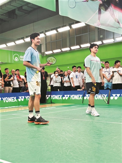 昨天,中国羽毛球队头号男双、“梁王组合”梁伟铿/王昶现身杭州,献上组对男双以来的首次T台走秀。梁伟铿还因为太紧张而提前走下T台,被观众们提醒之后笑着跑回台上,他之后还憨憨地打圆场:“走T台果然和打球不一样。”在2024年巴黎奥运会上夺得男双银牌的他们表示,将下一阶段的目标瞄准洛杉矶奥运会。对于11月在粤港澳三地举行的第十五届全运会,即将代表广东队参赛的梁伟铿表示,在男团项目要做到每分必争,在男双项目要与代表浙江队的王昶好好较量一下。