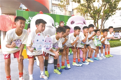 活动现场,“苏小超”小学男子甲组冠军队伍的小球员们用精彩的足球技艺,为大家展现体育运动的风采。小球员孟新艺今年五年级,踢足球也已满五年。他在现场为苏超和十五运会加油助威。他说,能参加这次活动,他很激动,以后会好好训练,希望将来能参加全运会。“十五运加油,苏超加油,南哥加油!”他的热情呐喊也将现场氛围带向高潮,全场齐声为苏超加油,为十五运会加油。
