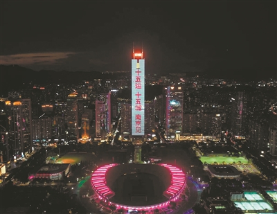 7月3日晚,广州地标中信广场的大屏亮起海报:“十五运助‘荔’苏超,为‘宁’加油,十五运十五城,南京见!”以璀璨灯光秀为“十五运十五城”预热,为南京加油助威。7月4日,南京鼓楼广场的大屏亮起海报:“苏超携手十五运,为‘宁’聚‘荔’,十五运十五城,南京见!”隔空回应广州。