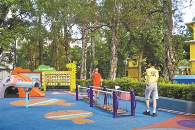 傍晚时分,已退休的郑求真带着孙子来到离家只有100米的社区儿童公园里游玩。他遇上老邻居、老同事,便一起聚在树下话家常。这个公园不仅可以“遛娃”,郑求真早晨也经常来这里晨练。“这个公园漂亮、方便。不仅我们社区的人来玩,连周边社区的人也被吸引过来。”