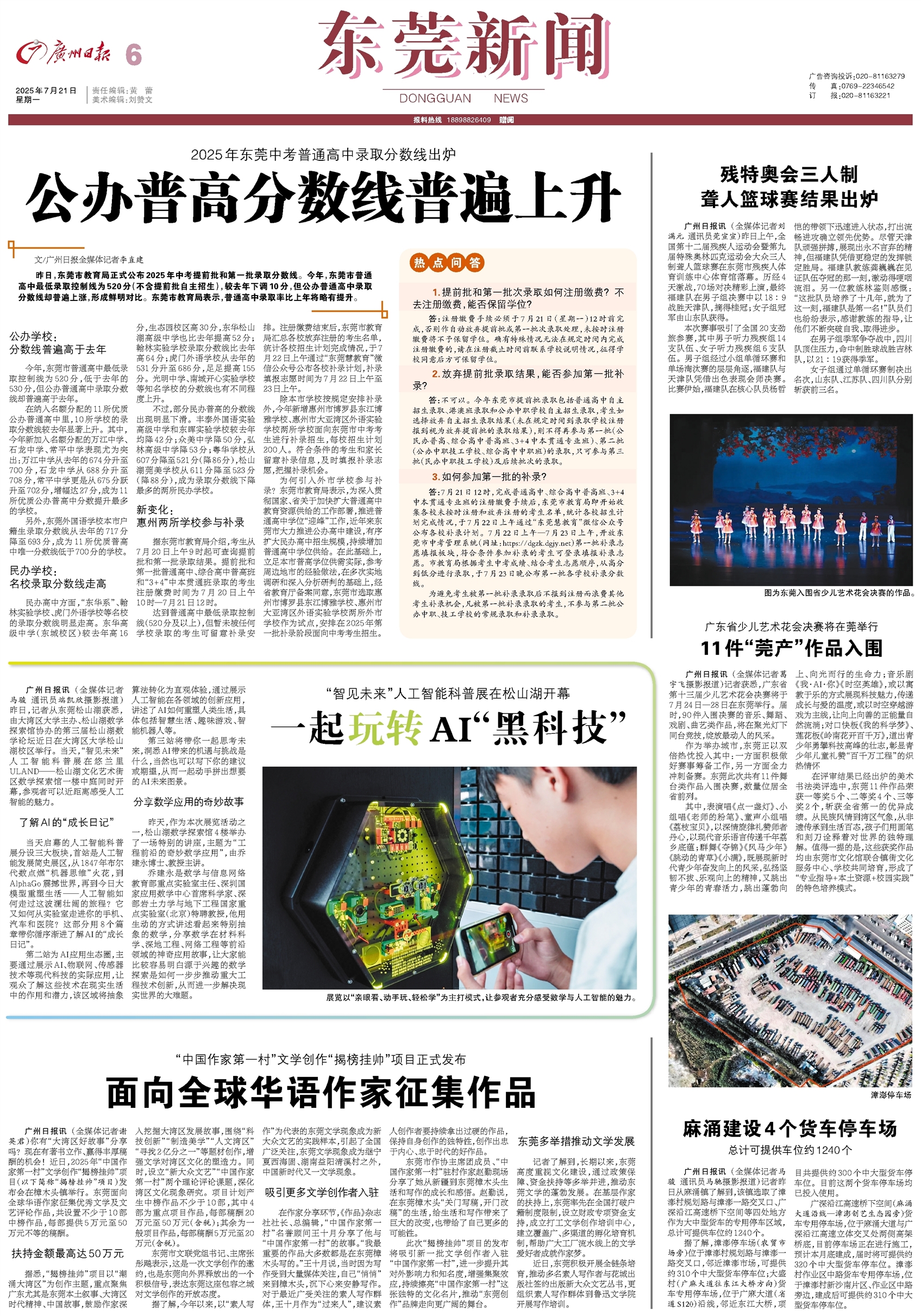 昨日,东莞市教育局正式公布2025年中考提前批和第一批录取分数线。今年,东莞市普通高中最低录取控制线为520分(不含提前批自主招生),较去年下调10分,但公办普通高中录取分数线却普遍上涨,形成鲜明对比。东莞市教育局表示,普通高中录取率比上年将略有提升。