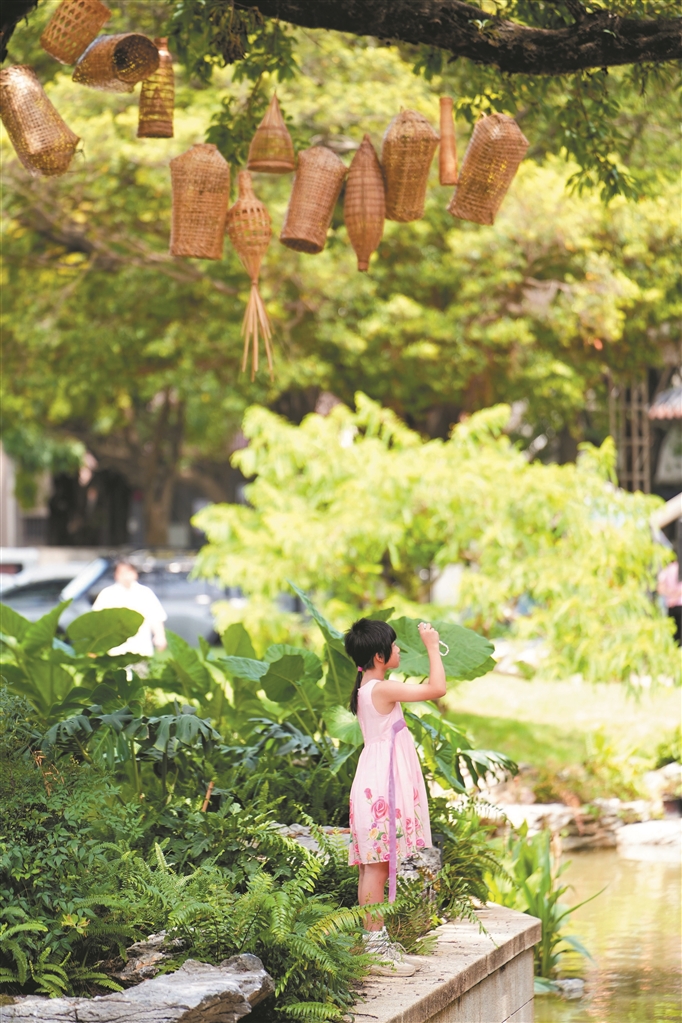 竹箩、竹筐、竹筛、竹簸箕、竹凳子、鱼篓、虾笼……这些竹编制品以其耐用、轻便、精巧,成为顺德家家户户的“标配”。随着时代变迁,这些竹编器物逐渐退出了人们生活的“舞台”。但在一批年轻艺术家的帮助下,传统手艺人再一次将这些竹编器物进行了艺术创新,这些竹编作品高挂在村中的大榕树下,“摇身一变”成为一件凸显岭南文化的公共艺术展品,这种创新成功为这些“困在时光中”的非遗注入了新的生命力。