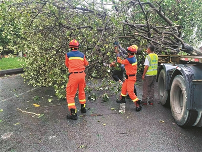 广州日报讯 (全媒体记者耿旭静 通讯员林正山、梁贻翅、周舒)受台风造成的大风降雨天气影响,南沙龙穴街道出现树木倒伏现象,专职消防队、街道工作人员立即出动紧急抢险,及时恢复交通,未造成次生灾害。据悉,台风前全区228处庇护场所开放,转移安置近2.3万人。