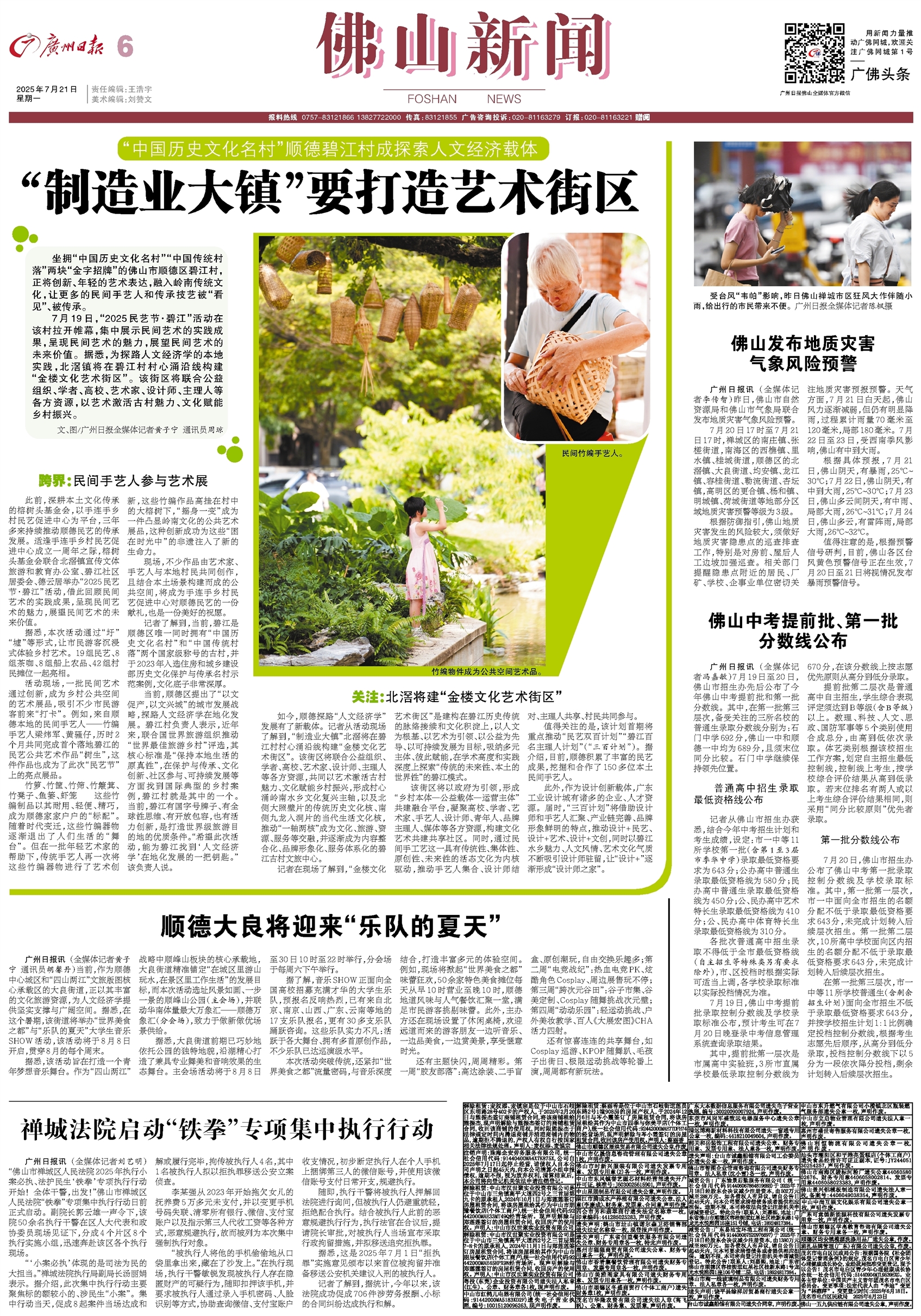 - “制造业大镇”要打造艺术街区 坐拥“中国历史文化名村”“中国传统村落”两块“金字招牌”的佛山市顺德区碧江村,正将创新、年轻的艺术表达,融入岭南传统文化,让更多的民间手艺人和传承技艺被“看见”、被传承。 7月19日,“202