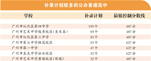 据悉,今年广州普通高中(含综合高中)全市有10649个计划进行补录,其中公办普通高中计划698个,民办普通高中计划8478个(含公费计划12个),中外合作办学计划1473个。中本贯通全市共有2个计划进行补录。中职三二分段及省级以上重点特色专业全市共有87所学校(含校区)445个专业5886个计划进行补录。