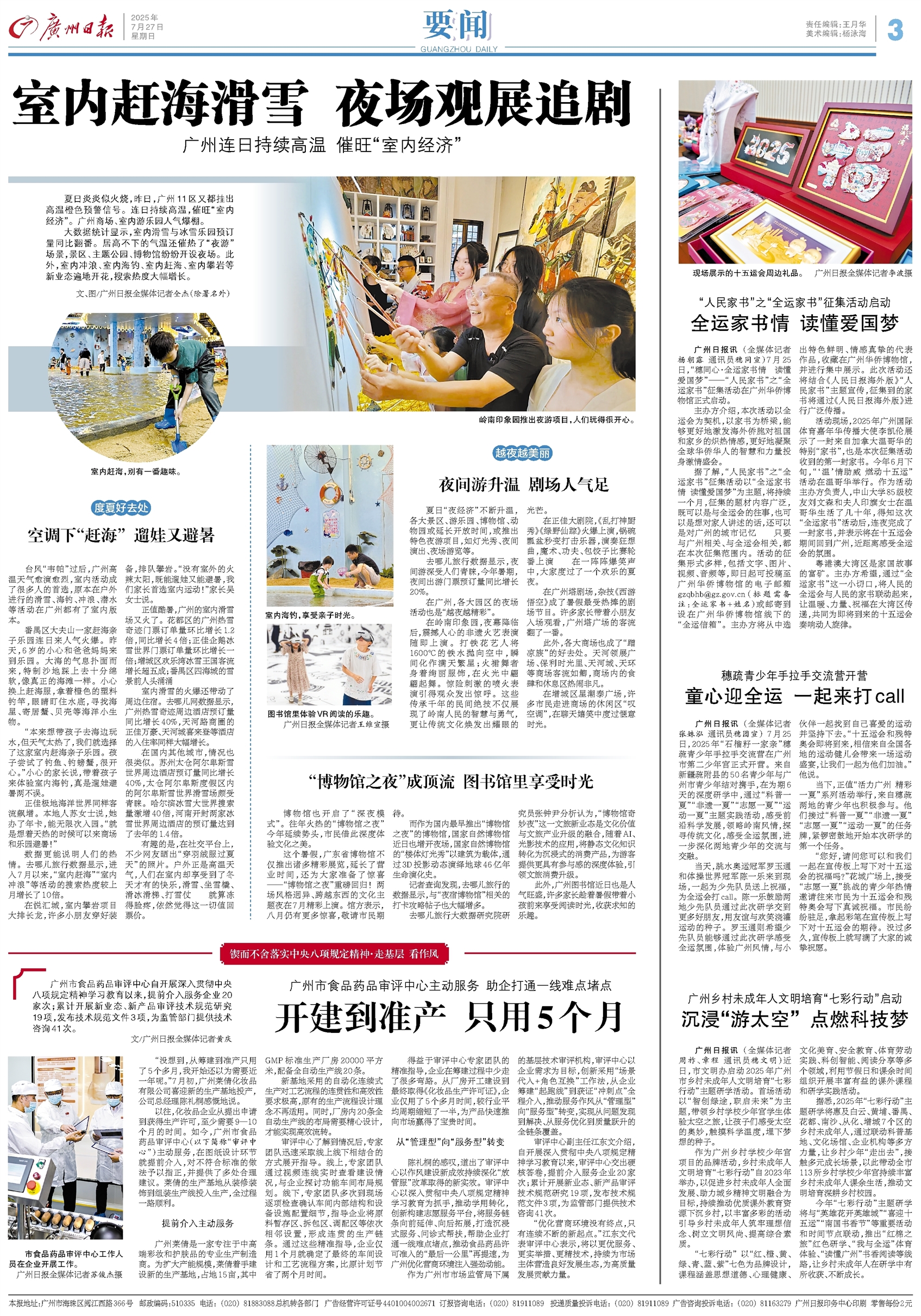 - 室内赶海滑雪 夜场观展追剧 夏日炎炎似火烧,昨日,广州11区又都挂出高温橙色预警信号。连日持续高温,催旺“室内经济”。广州商场、室内游乐园人气爆棚。 大数据统计显示,室内滑雪与冰雪乐园预订量同比翻番。居高不下的气温还催热