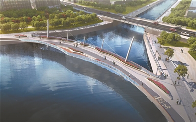 海珠涌人行桥建设前,行人从海印公园到对面的珠江泳场,需要从河堤走台阶到滨江东路上的鸭墩桥绕行。人行桥建成后,不仅将缩短跨涌的通行距离,也将打通珠江沿岸的跑步运动径、无障碍断点,提供游览、观景和休憩的平台。