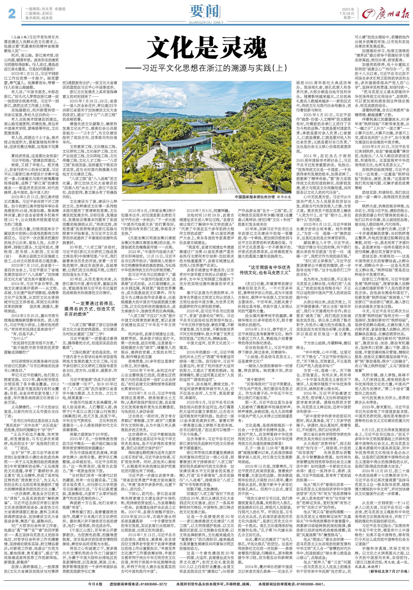 (上接1版)习近平首先将目光落在满足人民群众的文化需求上,他提出要“把最美好的精神食粮奉献给人民”—— 杭州,南山路。浙江美术馆,依山向湖,错落有致。波浪形态的建筑与西湖相得益彰。行人走过,像