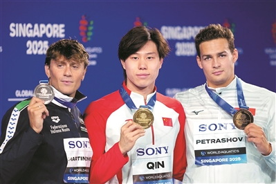 广州日报讯 (全媒体记者 周婉琪 实习生 杨礼彰)昨晚,2025年新加坡世界游泳锦标赛继续进行,在男子100米蛙泳决赛中,中国队的覃海洋以58.23秒的成绩夺冠,这是中国游泳队在本届世锦赛上夺得的首枚金牌。