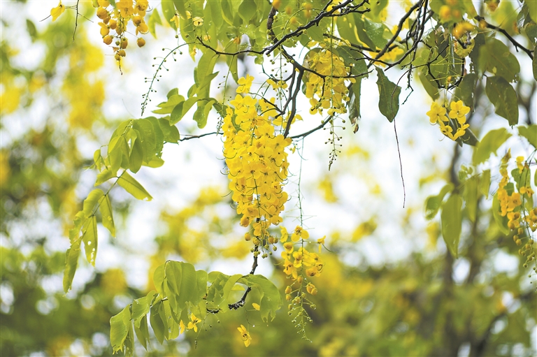 金灿灿的腊肠花挂在枝头。图:广州日报全媒体记者 杨耀烨