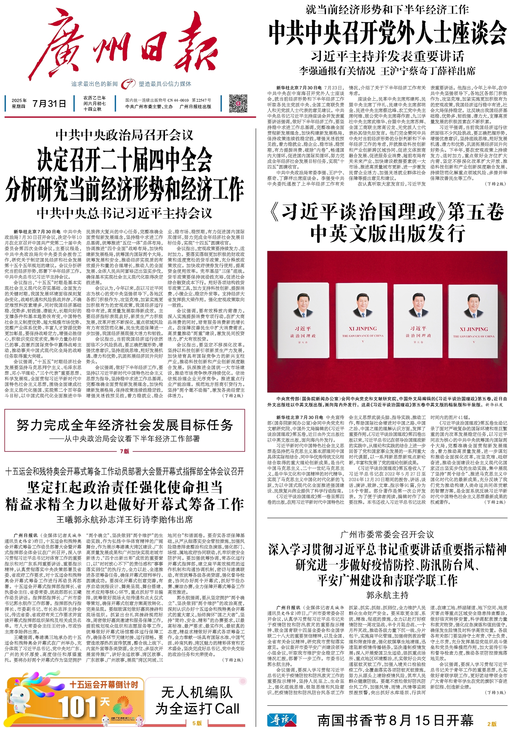 广州日报头版 A1深入学习贯彻习近平总书记重要讲话重要指示精神