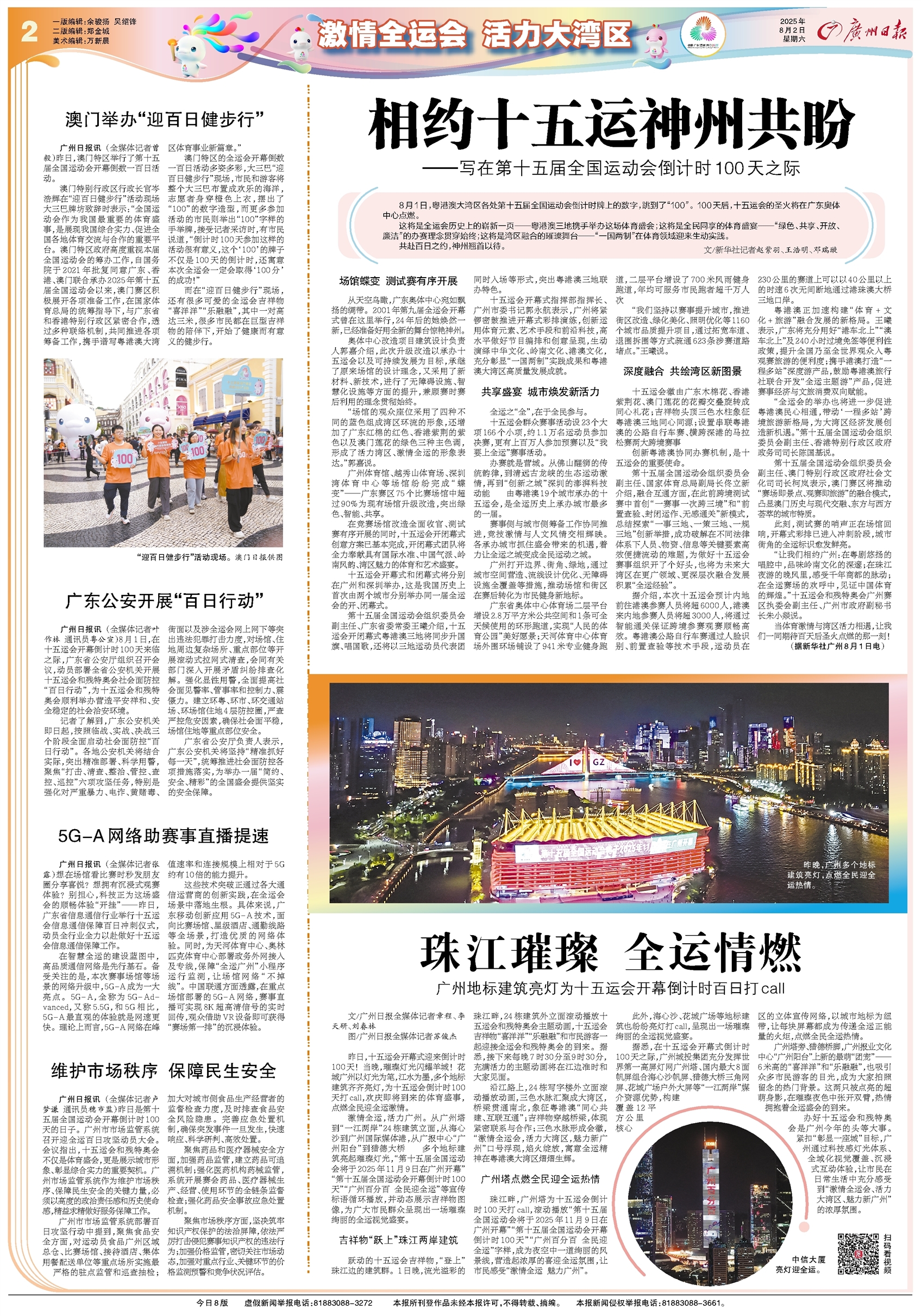 广州日报讯 (全媒体记者张露)想在场馆看比赛时秒发朋友圈分享喜悦?想拥有沉浸式观赛体验?别担心,科技正为这场盛会的顺畅体验“开挂”——昨日,广东省信息通信行业举行十五运会信息通信保障百日冲刺仪式,动员全行业全力以赴做好十五运会信息通信保障工作。