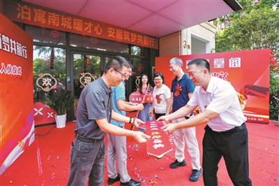 广州日报讯 (全媒体记者李直建 通讯员南城宣、罗伟良摄影报道)位于东莞市南城街道建设路的人才安居房项目“泊寓|凤篁阁”近日举行入伙仪式,首批208户人才正式入住新家。这标志着东莞市区这一专为人才打造的品质家园扬帆起航。