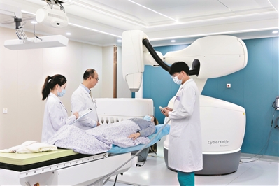 事实上,目前佛山禅医射波刀技术已经处于国际先进水平。一是引进的第六代M6射波刀(CyberKnife M6)是目前国际上最先进的放射外科治疗设备之一,有亚毫米精度、动态追踪、无创高效等优点;二是禅医团队由国际射波刀物理质控专家杨军博士领衔,2003年参与创建费城射波刀中心,是旧/新版射波刀物理质控规范(TG135)的制定者之一,曾负责和管理美国34个放疗中心及16台射波刀技术、临床及科研工作;佛山射波刀中心按国际高水平标准创建,是中国乃至亚洲第一家也是唯一一家国际放射外科协会的成员单位(全球14家),标准和质控被国际行业权威认可。三是在临床上,王恩敏教授从2007年开始至今,已通过射波刀治疗患者累计超过16000例。佛山禅医肿瘤精准诊疗中心、射波刀中心副主任卢秋霞表示,禅医射波刀中心可谓“战士”和“武器”都是顶尖的。对于早期的肿瘤,射波刀可以直接无创原位杀瘤根治;对于中期的肿瘤,射波刀可以作为综合治疗手段之一;对于晚期的肿瘤,可以配合药物、靶向免疫等治疗提高患者的生存率和生活质量。