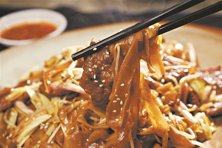 沙河粉是沙河街三大特色之一,也是广州家喻户晓的小吃美食。沙河粉因最早出自沙河街而得名,独特的米香,搭配生抽、老抽的浓郁调味,让“吃粉一族”难以抗拒。2021年,米粉制作技艺(沙河粉传统制作技艺)更是被列入第五批国家级非物质文化遗产代表性项目名录,成为岭南饮食文化的一张亮丽名片。