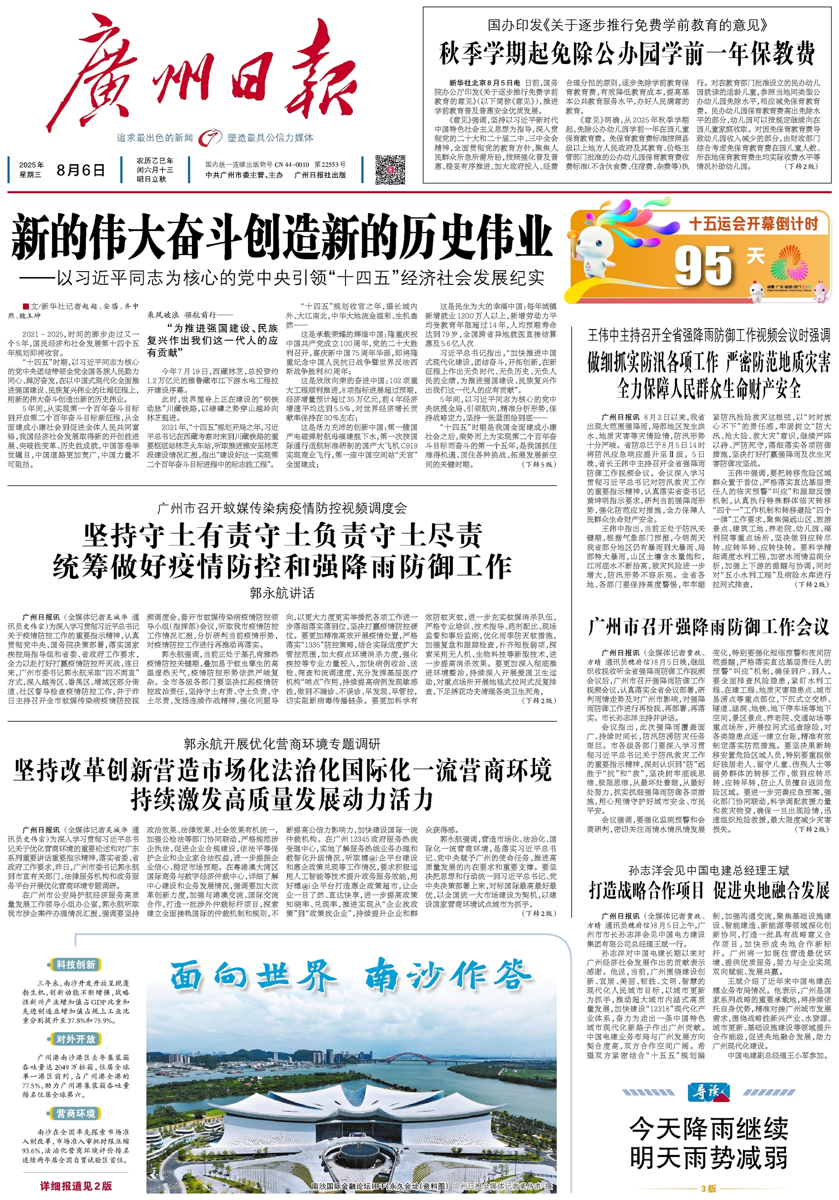 - 广州市召开强降雨防御工作会议 广州日报讯 (全媒体记者贾政、方晴 通讯员穗府信)8月5日晚,继组织收视收听全省强降雨防御工作视频会议后,广州市召开强降雨防御工作视频会议,认真落实全省会议部署,研判雨情走势及对广州市影响,对强降