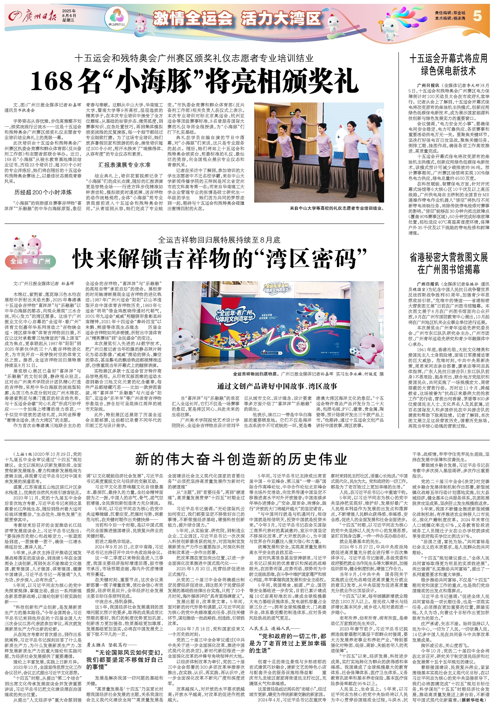 - 快来解锁吉祥物的“湾区密码” 全运年·看广州 文/广州日报全媒体记者 孙嘉晖 木棉红、紫荆紫、莲花绿三色水柱在展柜中折射出灵动光影,2025年粤港澳十五运会吉祥物“喜洋洋”与“乐融融”以中华白海豚的憨态,向观众展现“三