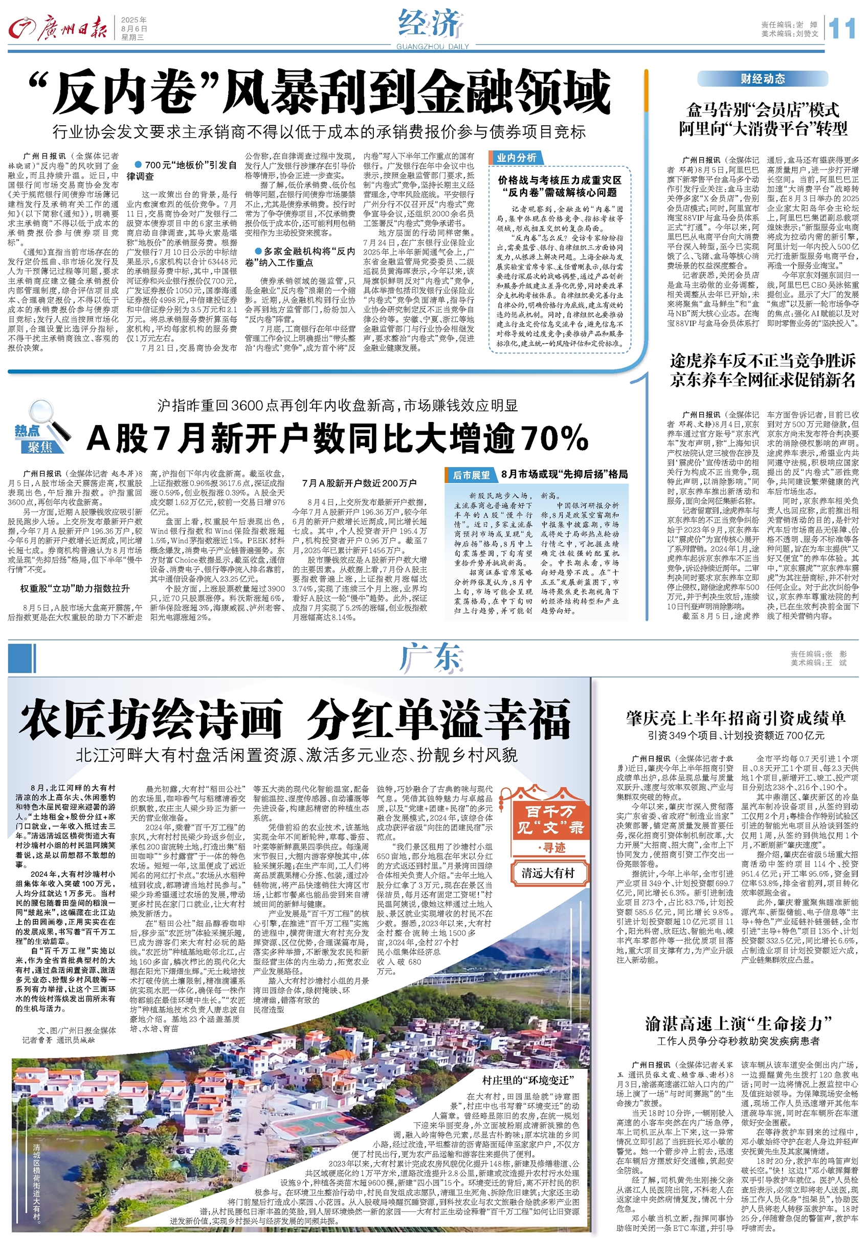 - 农匠坊绘诗画 分红单溢幸福 8月,北江河畔的大有村清凉的水上高尔夫、休闲垂钓和特色木屋民宿迎来避暑的游人。“土地租金+股份分红+家门口就业,一年收入抵过去三年。”清远清城区横荷街道大有村沙塘村小组的村民温阿姨笑着说,这是以