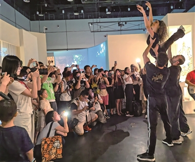 快闪活动当天,正在特展参观的游客惊喜地发现,身旁一群原本正在看展的外国“游客”突然“化身”歌舞演员现场表演。音乐剧《神曲》的6位主演和数名舞蹈演员用美妙的歌声、热情洋溢的舞蹈演绎了多首中意两国耳熟能详的经典曲目,赢得了现场游客的阵阵掌声和欢呼。