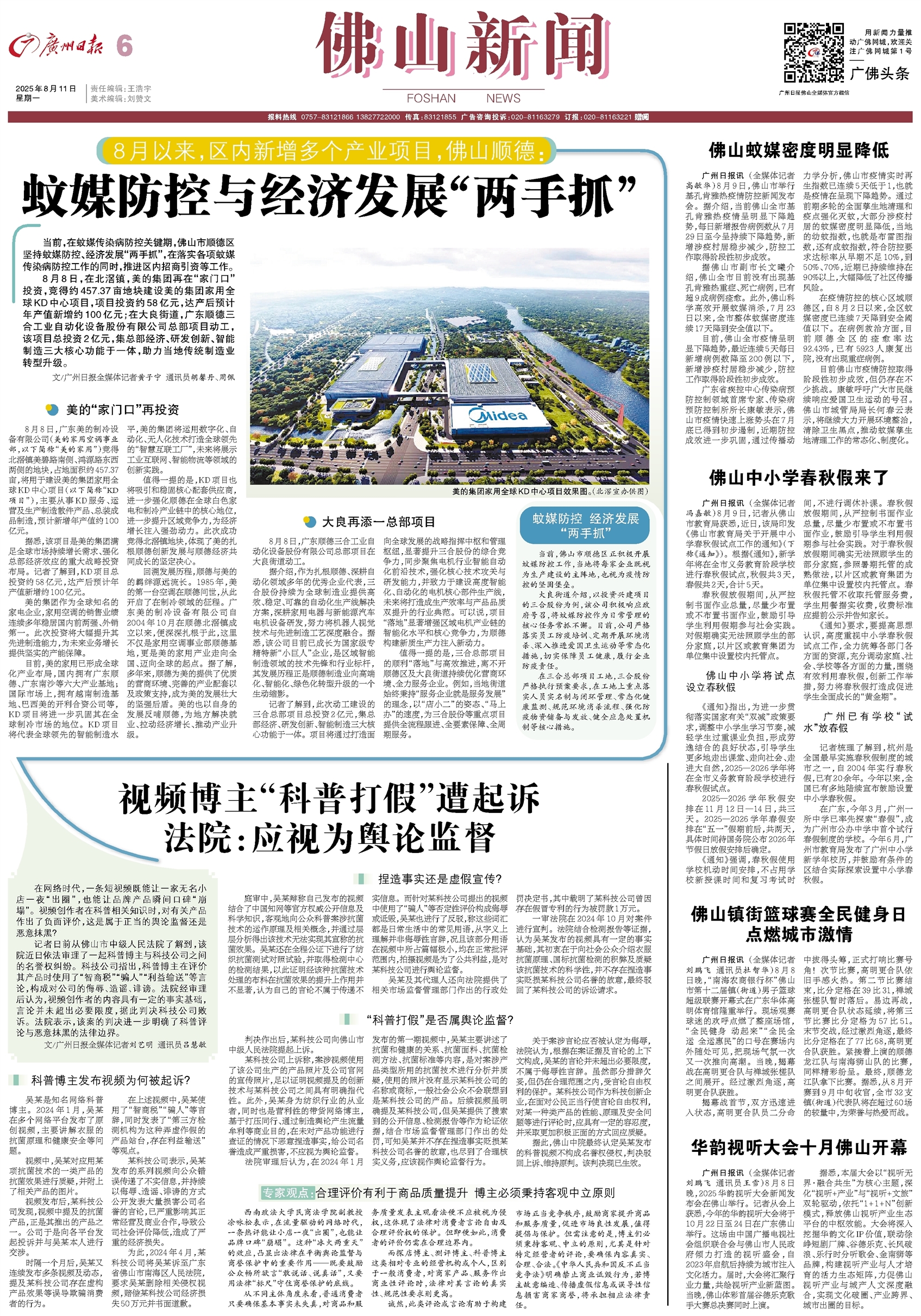 - 蚊媒防控与经济发展“两手抓” 当前,在蚊媒传染病防控关键期,佛山市顺德区坚持蚊媒防控、经济发展“两手抓”,在落实各项蚊媒传染病防控工作的同时,推进区内招商引资等工作。 8月8日,在北滘镇,美的集团再在“家门口”投资,竞得约