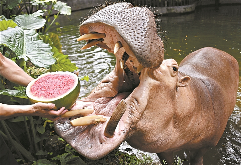 广州日报讯 (全媒体记者轩慧 实习生熊心怡 通讯员李木生 摄影报道)记者从深圳野生动物园了解到,现在虽然已立秋,但实际仍处于“三伏天”。居住在动物园的“居民们”玩冰块、吹空调、吃西瓜、戏水……用各种“凉方”纳凉降温。