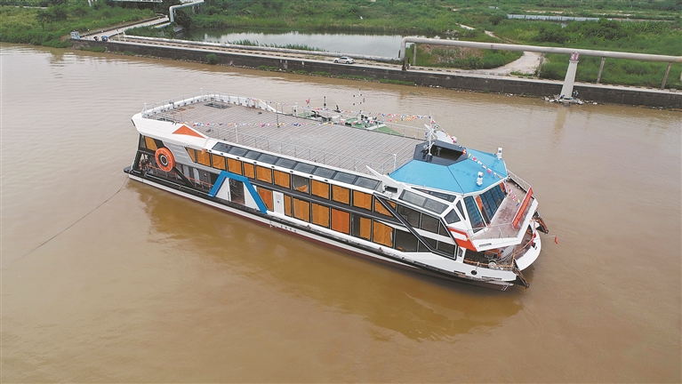 作为一艘纯电力驱动观光游览船,“星舰领航”采用磷酸铁锂纯电动力驱动,可实现航行过程零排放、低能耗、低噪音,有效降低对珠江水域生态环境的影响,为游客带来安静、清洁、舒适的“零碳畅游”体验。未来,这艘观光船将投入珠江夜游营运,并服务即将在11月举办的十五运会,成为珠江夜幕下的一道亮丽风景。