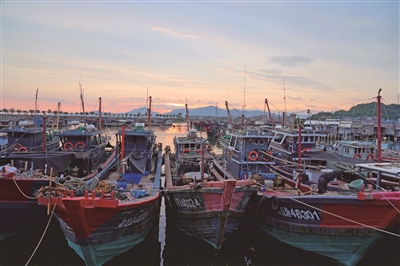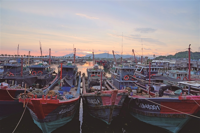 广东饶平汫洲镇三百门码头,渔船在港避风。广州日报全媒体记者陈家源 通讯员黄春生 摄