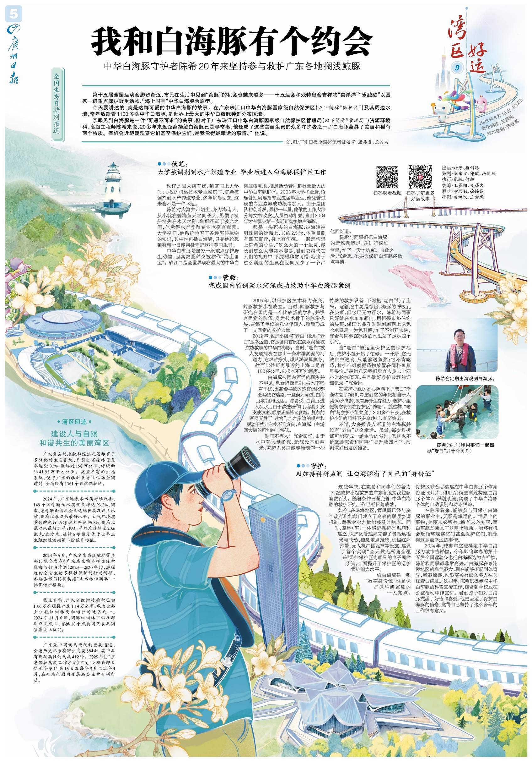 湾区好运⑨ 全国生态日特别报道 第十五届全国运动会脚步渐近,市民在生活中见到“海豚”的机会也越来越多——十五运会和残特奥会吉祥物“喜洋洋”“乐融融”以国家一级重点保护野生动物、“海上国宝”