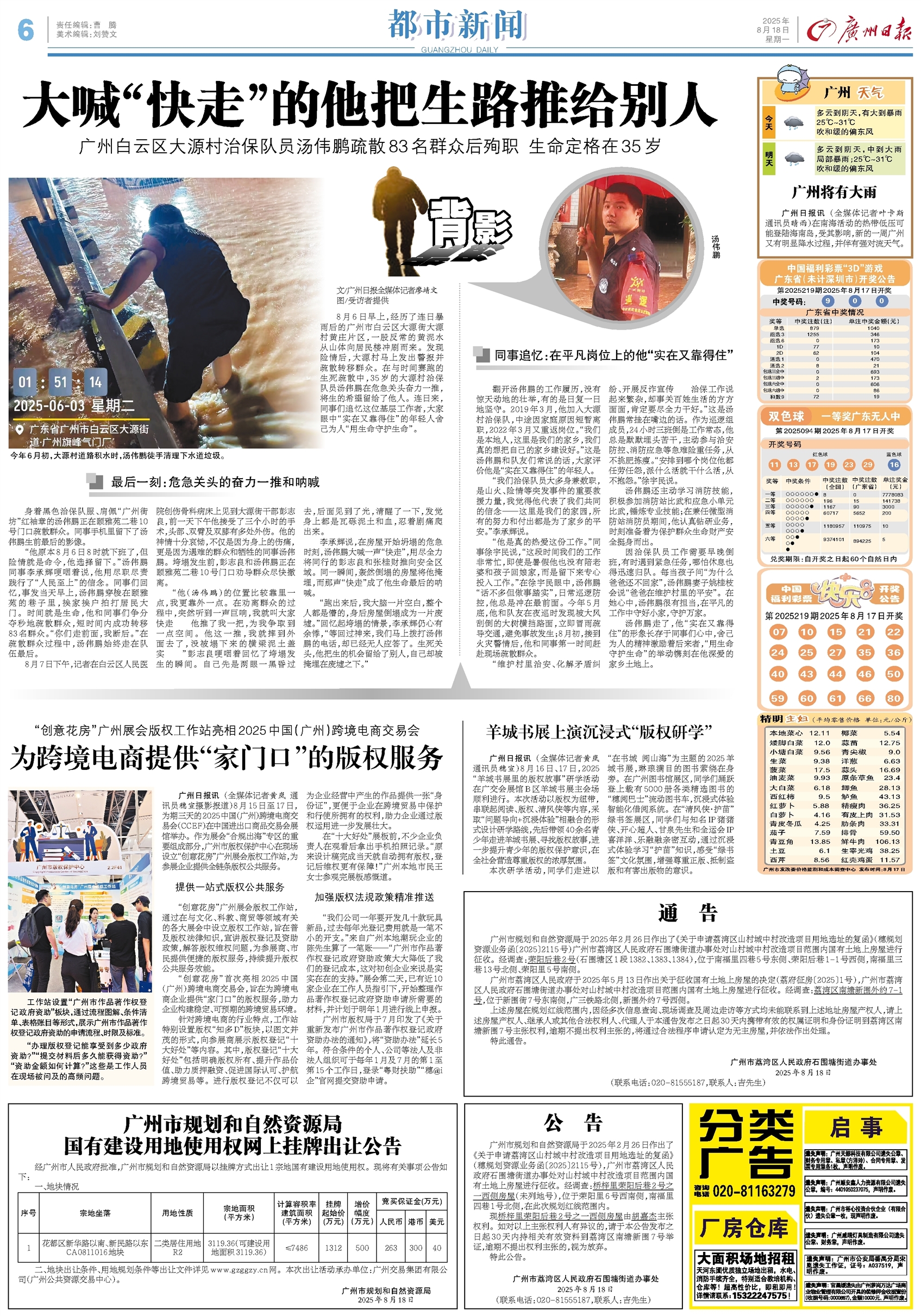 - 大喊“快走”的他把生路推给别人 背影 文/广州日报全媒体记者廖靖文 图/受访者提供 8月6日早上,经历了连日暴雨后的广州市白云区大源街大源村黄庄片区,一股反常的黄泥水从山体向居民楼冲刷而来。发现险情后,大源村马上发出