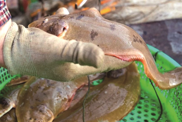 刚从海上归来的渔民吴女士正和丈夫一起忙碌,一边售卖渔获,一边修整渔网。夫妻俩脸上虽带着些许疲惫,但也难掩收获的喜悦。这一网,带回了实实在在的收获。“我们是今天凌晨1点半出发的,往福永机场附近的海域去,开了2个多小时的船才到作业地点,刚回来没多久。这次收获还不错,捕到了一些黄脚立鱼,还有一些杂鱼。”吴女士笑着说。