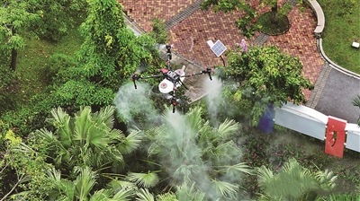 广州日报讯 (全媒体记者汤南 通讯员全碧芳、李晓东、易鹏摄影报道)昨日,记者从广州市白云区城市管理和综合执法局获悉,自7月30日以来,该局率先创新试点四旋翼无人机搭载智能喷洒系统进行灭蚊,全覆盖消杀道路绿地、公园等复杂区域,10天内完成从试点向全区推广。
