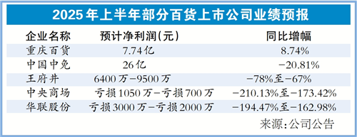 也有部分百货公司预亏。面对亏损,部分上市公司认为主要受自身变革、消费者消费习惯变化等因素影响。华联股份表示,今年上半年公司推进部分项目的经营性改造,导致购物中心业务面临较大的盈利压力。王府井表示,业绩下滑主要受公司主动应对消费趋势变迁进行相关调整影响。广百股份在公告中提及,公司主动因应市场变化调整业务布局,对个别低效门店实施战略性退出,将资源集中投入到核心商圈旗舰店的场景升级与服务优化之中,大力拓展免税店等新业态,全面推进数智化转型,在短期内导致公司营收规模和利润下降,但有利于构建更可持续的盈利模式。