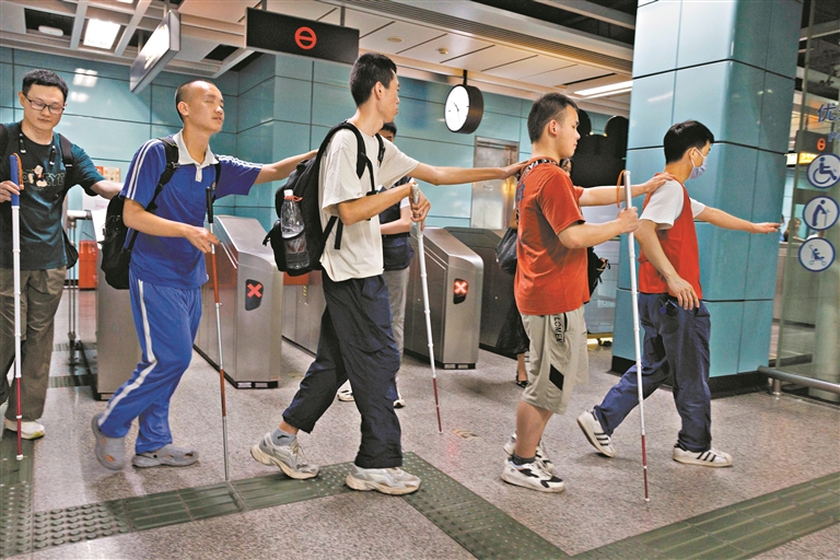 “上海有个视障大学生预科班,但有人数限制,而且距离较远。”家和回忆道,后来广州日报全媒体记者链接广州市合木残障公益创新中心,在广州市启明学校指导下,共同发起了本地首个视障学生社会化衔接训练营,回应本地盲校毕业生的社会衔接需求。家和当时就报了名。在训练营,他和盲校的其他同学一起挑战出行任务,探索身份认同,完成了许多人生第一次。